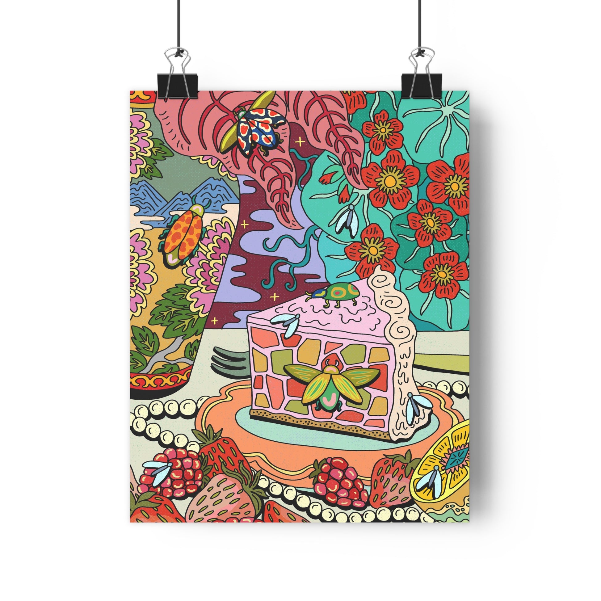 This giclée art print brings a warm, nostalgic tabletop scene into your home with rich, painterly color and meticulous detail. Vivid pigmented inks capture every jewel-toned blossom, patterned vase, and slice of cake, creating a lively composition that feels both cozy and celebratory. Printed on museum-grade, archival paper with a matte finish, the image stays true and vibrant over time without yellowing. The textured weight gives the piece presence on the wall, whether tucked into a breakfast nook, brightening a kitchen gallery, or layered among other prints in a living room vignette. Hang it framed for a polished display or use tacks or double-sided tape for a casual, collected look—the result is a cheerful, artful focal point that invites closer inspection and sparks conversation.